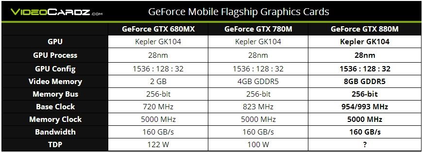 La GTX 880M sería una GTX 680MX renombrada con 8 GB de RAM