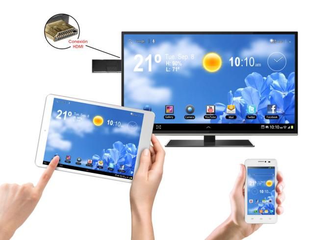 El principal escollo con el que se encuentra esta tecnología no obstante es que todavía son pocos los modelos de televisión que la incorporan, por no hablar del enorme parque de televisiones que no la tienen. Esto hace que en los últimos tiempos se hayan popularizado los adaptadores Miracast, que conectados a un puerto HDMI de nuestro televisor, nos proporcionan esta función. Es el caso de Woxter Miracast 110, un dongle que por menos de 30 euros, nos permite ver los contenidos de nuestro teléfono en nuestro televisor.