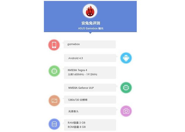 Sobre la base de esta última parece estar creada un misterioso ASUS Gamebox aparecido en AnTuTu que apunta a un dispositivo portátil con un SoC Tegra 4, 2 Gbytes de RAM y 8 Gbytes de capacidad de almacenamiento interno.