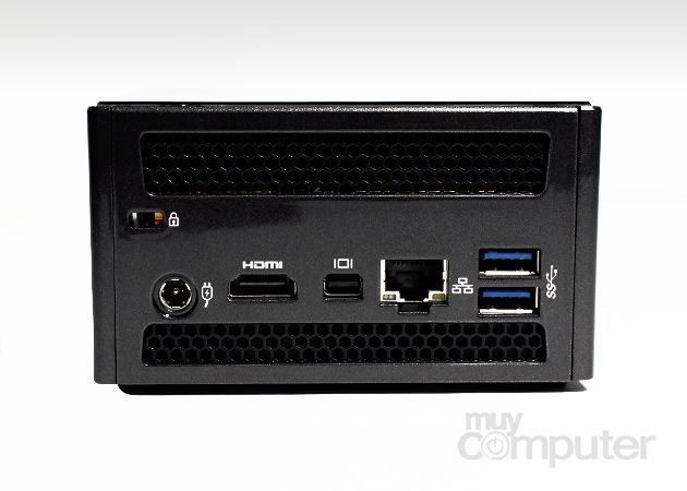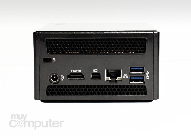 En el panel posterior, además de dos generosas ranuras destinadas a la correcta ventilación del equipo, veremos puertos HDMI y Mini DisplayPort (se pueden utilizar dos monitores a la vez), la toma de alimentación, una ranura de seguridad Kensington y dos puertos USB 3.0 adicionales. Esta es la configuración de serie del dispositivo: