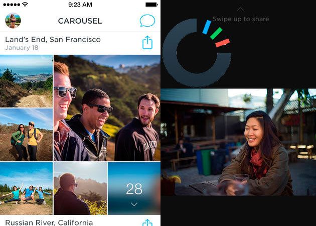 Además, Carousel permite la organización por fecha y ubicación, y también es capaz de navegar directamente en el carrete de nuestro smartphone, sin necesidad de que su contenido esté en Dropbox.