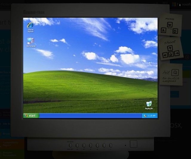 Obviamente no es nada del otro mundo, pero resulta divertido, y además no deja de resultar llamativo que el equipo de Internet Explorer haya caracterizado a Windows XP como un terrible villano tipo «Skynet» en este juego.