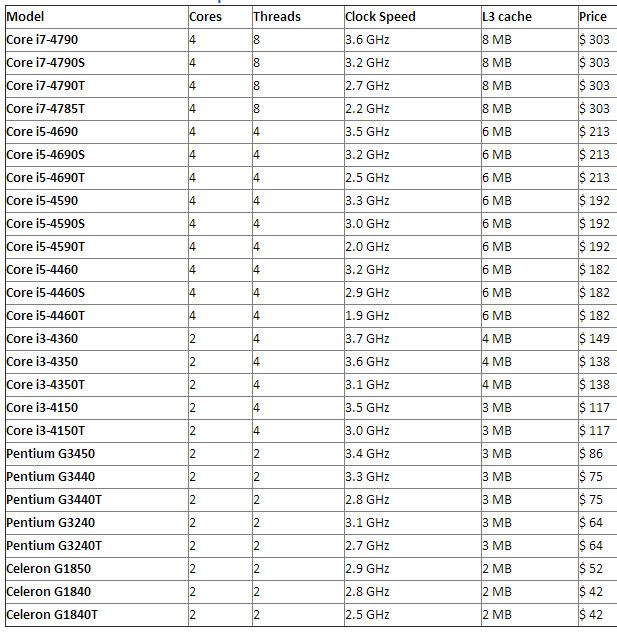 La actualización incluye modelos Celeron, Pentium, Core i3, Core i5 y Core i7 destinados a cubrir todo el rango informático: ordenadores de sobremesa, portátiles, AIOs o tablets. Los Intel Haswell Refresh mantienen la arquitectura de los Haswell aumentando la frecuencia de trabajo y serán compatibles con las placas base actuales bajo socket LGA 1150 mediante actualización de la BIOS, además de las próximas que incluyan los nuevos chipsets Z97 y H97 que Intel ha diseñado para la plataforma.