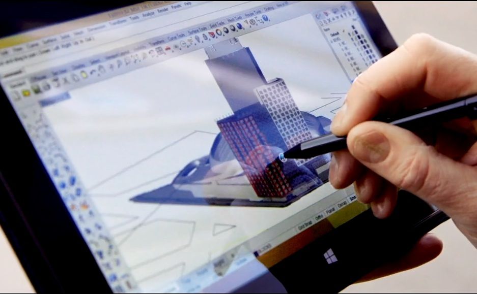 Sube al escenario Panos Panay de la división Surface, quien hace un repaso a las posibilidades de Surface mostrando un vídeo donde hablan diversos profesionales, desde médicos a arquitectos, alabando las bondades de Surface.