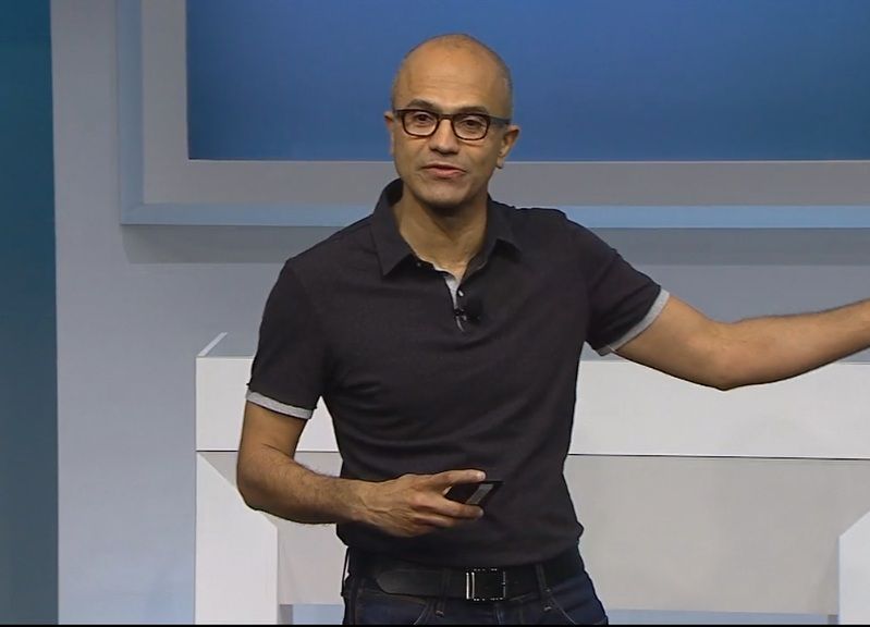 Comienza el evento con Satya Nadella, CEO de Mirosoft en el escenario, dando una charla sobre la importancia de la productividad y la importancia de conjuntar hardware y software con el que «leer, escribir, crear».
