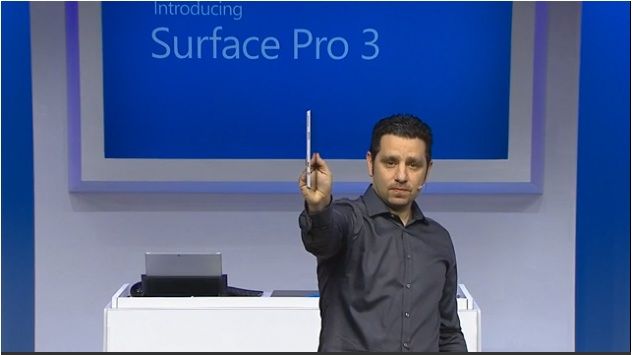 Panay empieza a hablar del nuevo soporte de Surface Pro 3, que ofrece una apertura que va desde los 22º hasta los 150º.