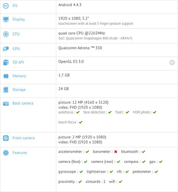 Por lo demás vemos que la cámara trasera sería de 12 MP, mientras que la frontal tendría 2 MP. Finalmente el director de orquesta será Android 4.4.3.