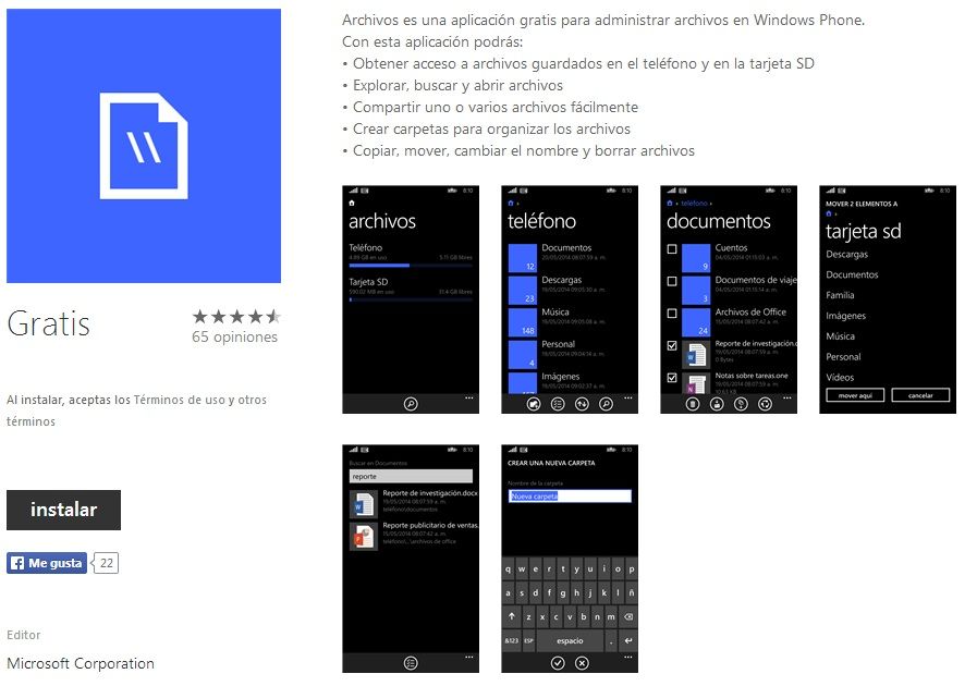 Archivos, el gestor de Windows Phone, ya disponible