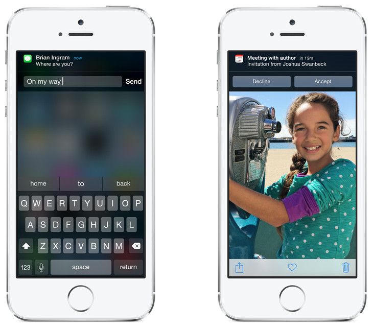 El nuevo sistema de notificaciones permite responder directamente a los avisos sin salir de la aplicación en la que estemos. Avisos como mensajes de chat, correo electrónico, invitaciones, calendario , recordatorios o aplicaciones de terceros como Facebook. Una nueva forma más rápida y útil de contestar a estas notificaciones sin dejar lo que estemos haciendo.