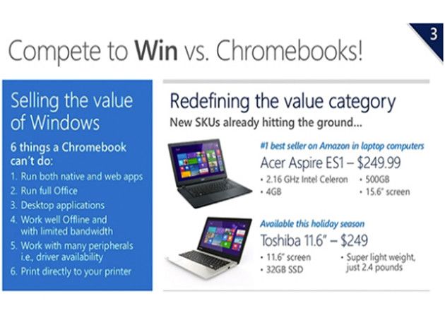 «Vamos a participar en la gama baja. Tenemos una gran propuesta de valor contra los Chromebooks, no vamos a ceder el mercado a nadie«, explicó el jefe de operaciones de Microsoft, Kevin Turner, en la conferencia anual con socios WPC 2014 que se está celebrando en Washington