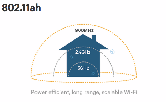 Con todo, debemos recordar que antes del estándar 802.11ax veremos los estándares 802.11ad y 802.11ah, el primero capaz de trabajar con rangos de alcance muy pequeños pero de gran rendimiento, y el segundo preparado para operar en la banda de 900 MHz que, como vemos en la imagen, tiene un gran alcance.