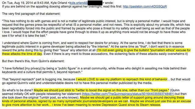Esta conducta es más propia de una mafia que de un periodismo libre, pero eso eso no es todo, ya que incluso uno de los periodistas de Kotaku mantuvo relaciones sexuales con Zoe Quinn, desarrolladora del juego Depression Quest, quien ya la había mencionado en un artículo anteriormente con la publicidad y el beneficio que eso conllevaba para ella.