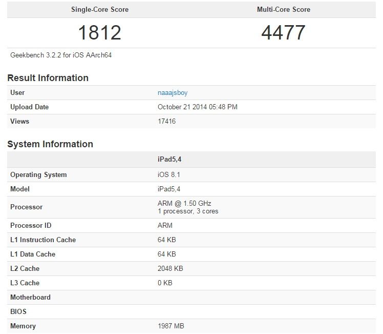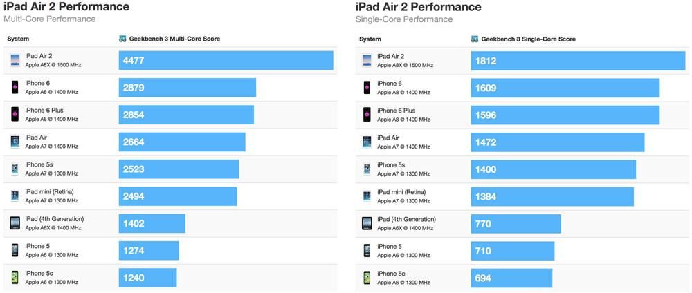 Sí, dos novedades muy importantes que de hecho confirman algunos rumores que vimos hace semanas, y que hacen que el iPad Air 2 de Apple sea un auténtico bicho a nivel de rendimiento, algo que queda claro al ver sus resultados en el benchmark Geekbench 3 donde registra un rendimiento superior a todos los dispositivos de Apple hasta la fecha, tanto a nivel mononúcleo como multinúcleo.