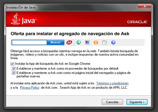 No creas que son únicamente desarrolladores menores los que persiguen al usuario con Junkware porque ahí tenemos a gigantes como Oracle metiendo con calzador en Java basura como Ask, o Adobe, software innecesario como el McAfee Scan Plus en la instalación de Flash Player.