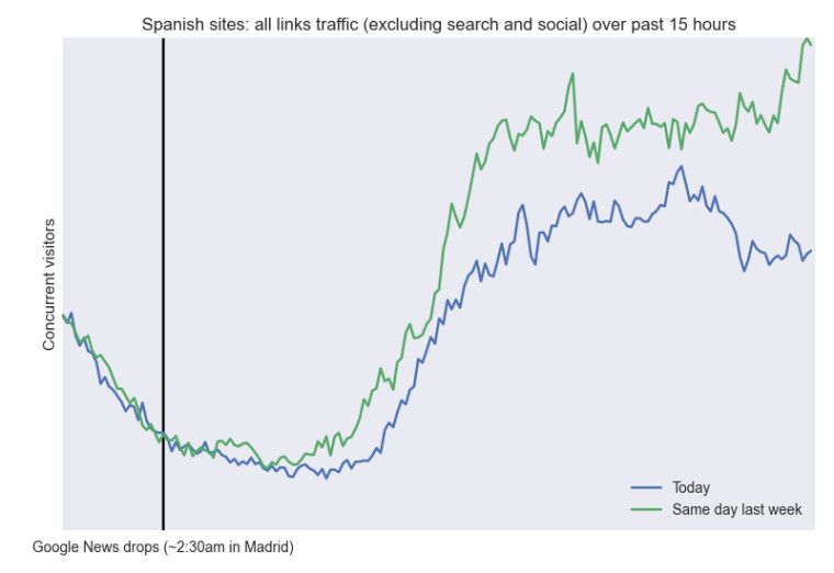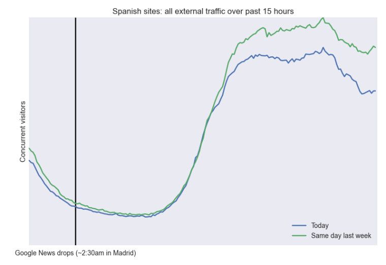 Centrándonos en dichas consecuencias podemos ver que el tráfico externo ha caído un 15% tras el cierre de Google News, una media que es el reflejo de un total de 50 medios españoles que han participado de forma anónima en este sondeo.