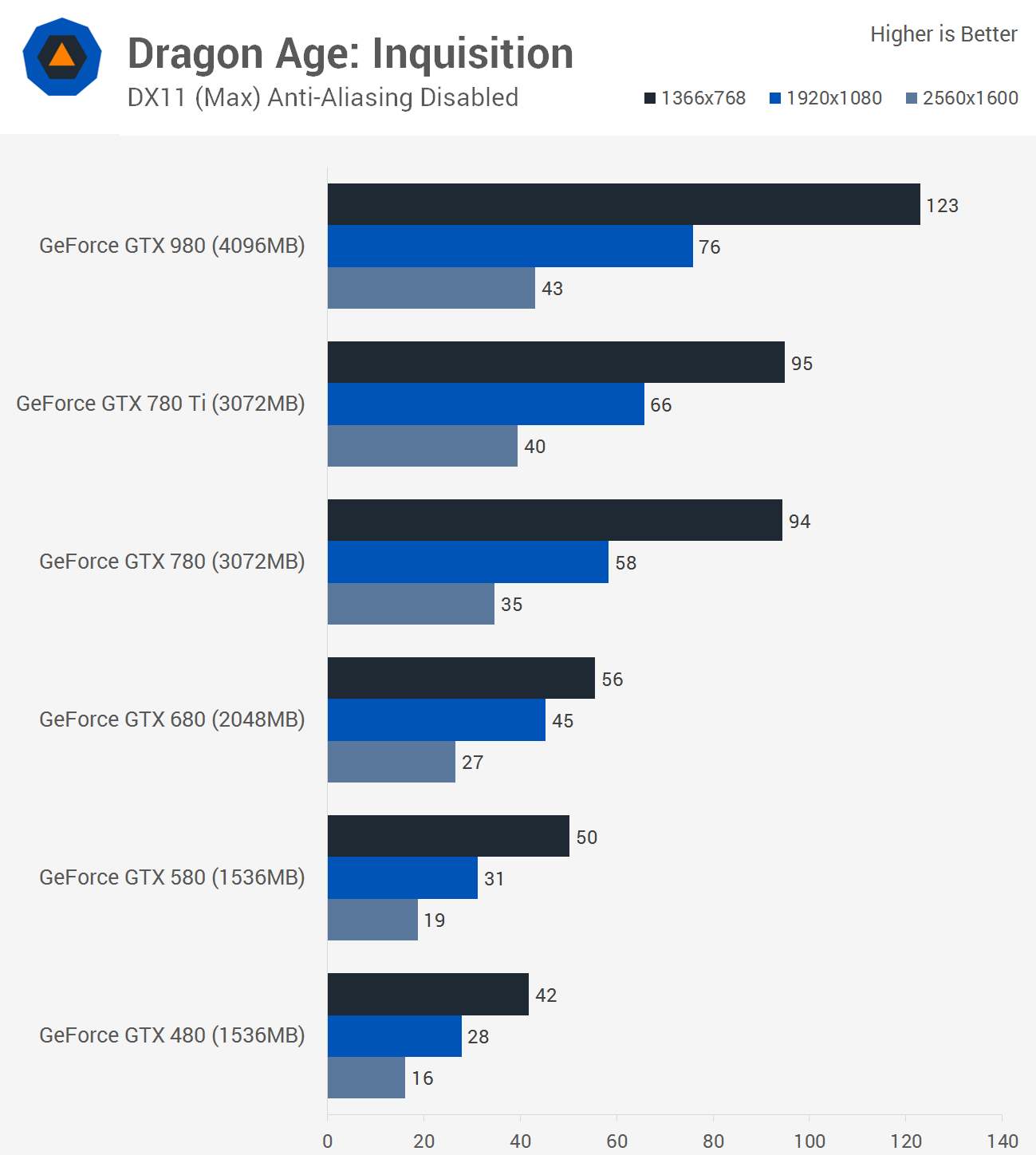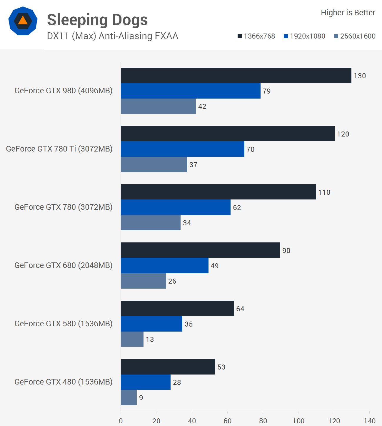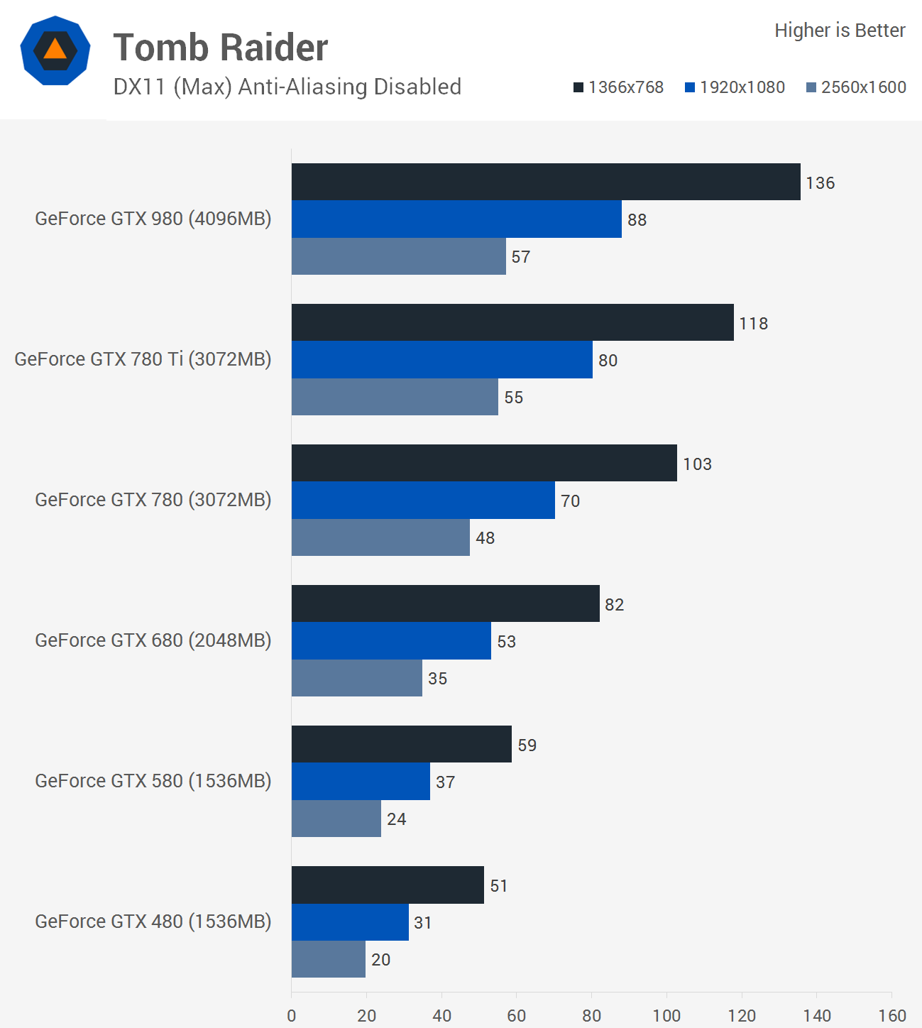 Revisando el rendimiento a través de las diferentes gráficas vemos que una GTX 480 sigue siendo una solución gráfica muy capaz a día de hoy, aunque su consumo es tan elevado como el de una GTX 780 TI, lo que la coloca con un nivel de eficiencia realmente bajo. Por su parte la GTX 980 deja clara su potencia y eficiencia, ya que rinde más que la GTX 780 TI y consume menos que la GTX 680.