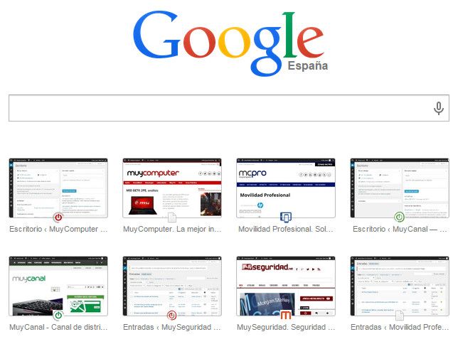 La página nueva pestaña muestra las miniaturas de los sitios web que visitas con más frecuencia. Para eliminar una página web desde la página de nueva pestaña, mueve el ratón sobre la miniatura de la página y haga clic en la X que aparece en la esquina superior derecha de la miniatura. También puedes eliminarlas en el historial de navegación.