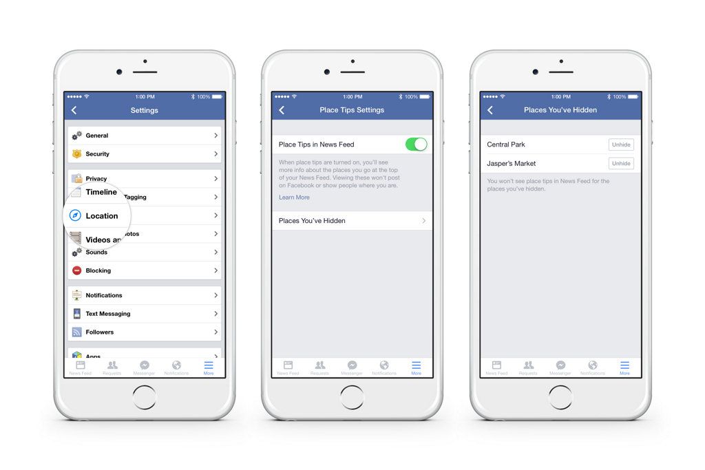 Con Place Tips se mostrará en la sección Últimas Noticias una serie de tarjetas con información sobre el lugar en el que se ubica el usuario, además de publicaciones de amigos y páginas que se hayan marcado como “me gusta”, todo relacionado con un lugar muy concreto, ya sea Central Park en Nueva York o un pub.