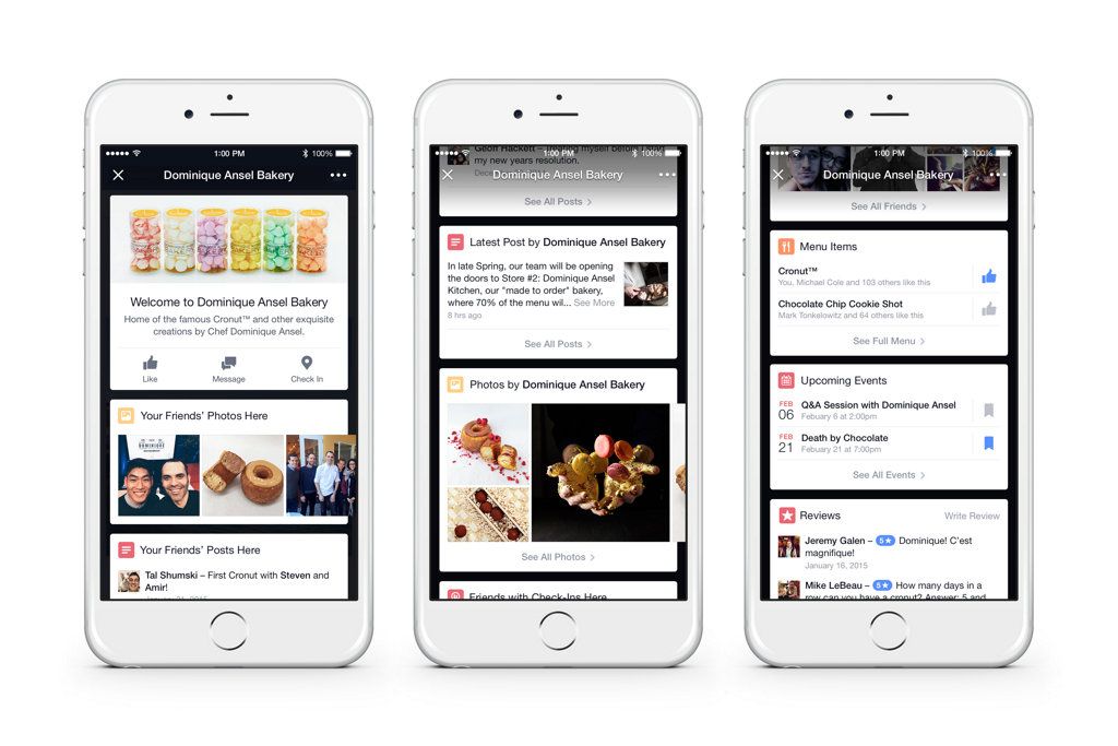 La nueva característica de Facebook no solo dará detalles sobre el lugar en el que esté el usuario, también informará sobre los eventos importantes que se tienen planeado en ese sitio, por si alguno le puede resultar de interés. En la siguiente imagen se puede ver un ejemplo, en inglés, con información de todo tipo sobre la “Pastelería de Doiminique Ansel”.
