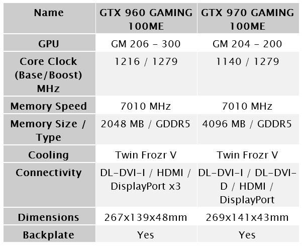 De momento no conocemos el precio de ambas tarjetas, bautizadas como [pajarito]MSI GTX 960 GAMING 100 ME[/pajarito] y MSI GTX 970 GAMING 100 ME.