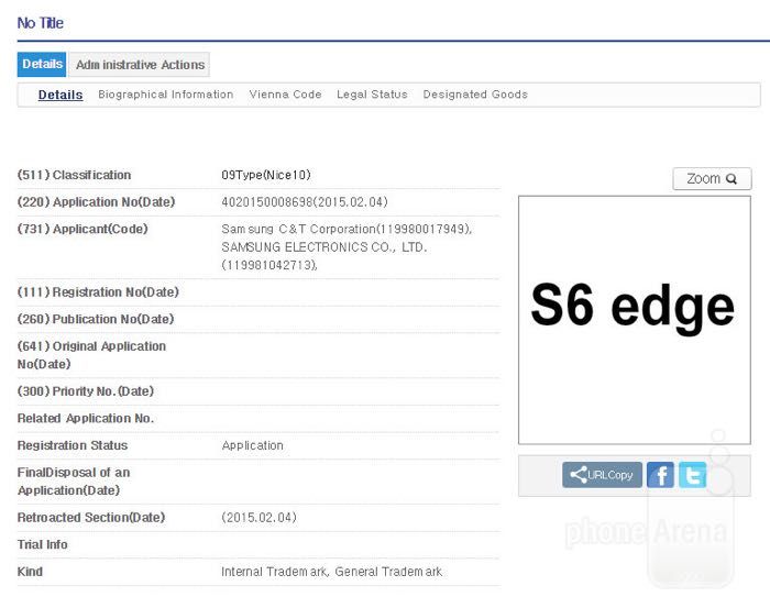 Se ha confirmado, el gigante coreano ha registrado en su tierra natal, Corea del Sur, los nombres Galaxy S6 y Galaxy S6 Edge, un movimiento que deja claro que los rumores que habíamos ido viendo sobre la llegada de dos versiones de su nuevo tope de gama son totalmente ciertos.