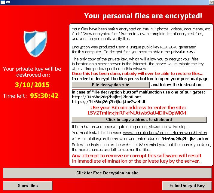 Si queremos eliminar el cifrado, que en teoría es de 2.048 bits, tenemos que pasar por caja y realizar un pago en Bitcoin, tras lo cual recibiremos nuestra «llave» a través de Tor con la que podremos abrir «el candado» y recuperar nuestros datos.