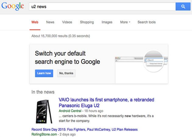 Google está pidiendo a los usuarios de Firefox que vuelvan a su buscador con un gran mensaje situado encima de sus resultados de búsqueda orgánica.