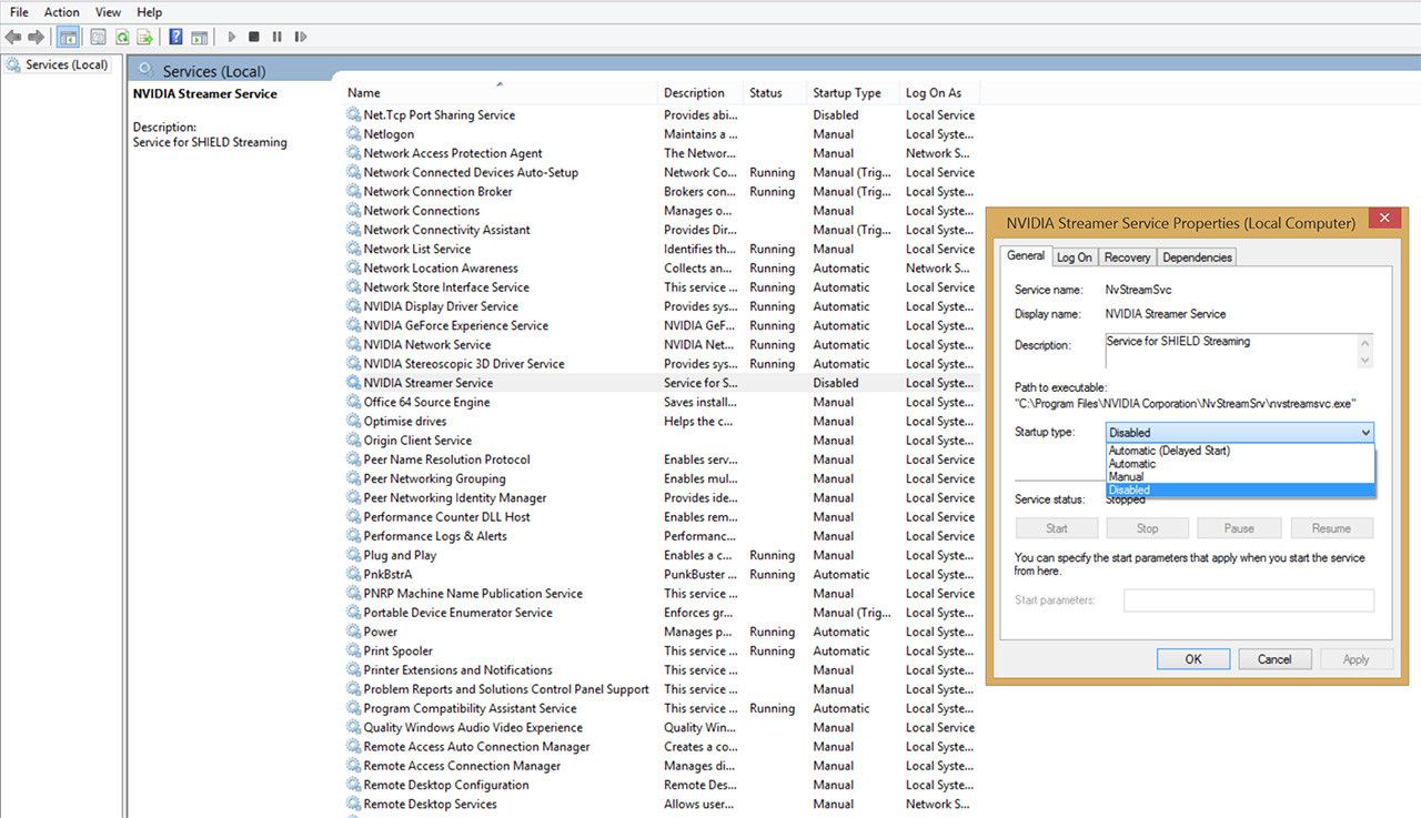 - Buscamos NVIDIA Streaming y cambiamos su estado a «Deshabilitado«, como vemos en la imagen que acompaña al artículo.