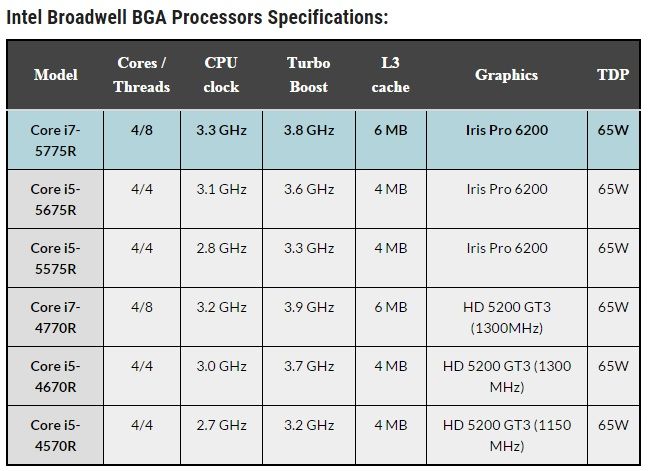 Os recuerdo que la letra C al final del nombre del procesador parece hacer referencia a «cuatro núcleos y multiplicador desbloqueado«, mientras que la R hace referencia a soluciones integradas, soldadas a la placa.