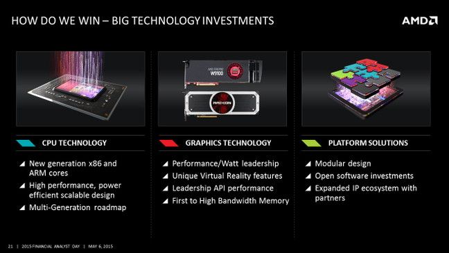 La compañía también anunció inversión agresiva en otros mercados más allá del PC, incluyendo juegos (ya hemos visto su entrada en PS4 y Xbox One), sistemas integrados (embebidos) o sistemas de realidad virtual.