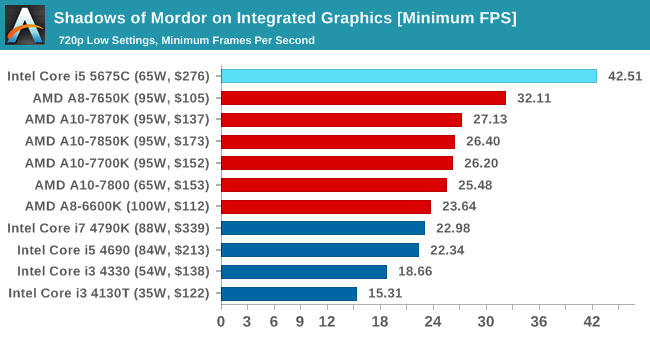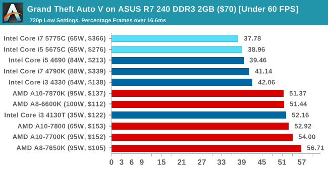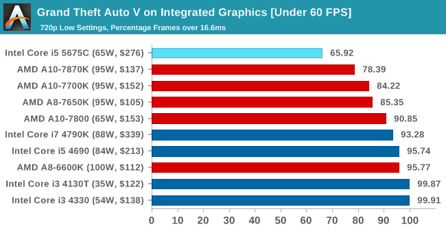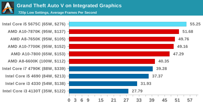 En GTA V la historia se repite y de nuevo la Iris Pro 6200 se impone ante las soluciones de AMD, dejando claro que marca un antes y un después en la historia de las soluciones gráficas integradas de Intel.