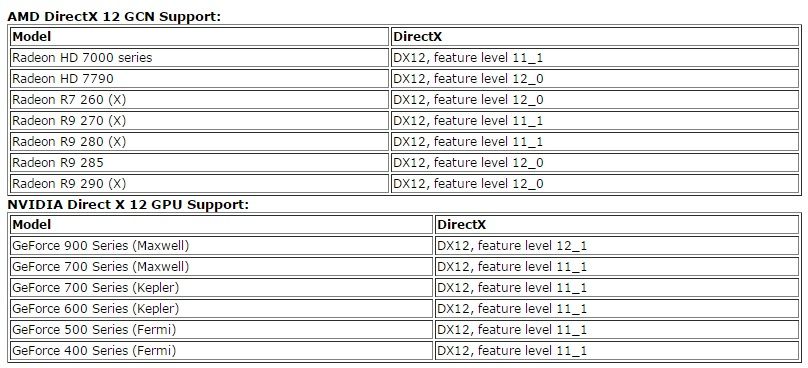 Como podemos ver en el cuadro que acompaña a la noticia las tarjetas gráficas basadas en GCN 1.0 están limitadas a un nivel de compatibilidad con funciones 11_1, mientras que aquellas que utilizan GCN 1.1 y 1.2 tienen un nivel de soporte 12_0.
