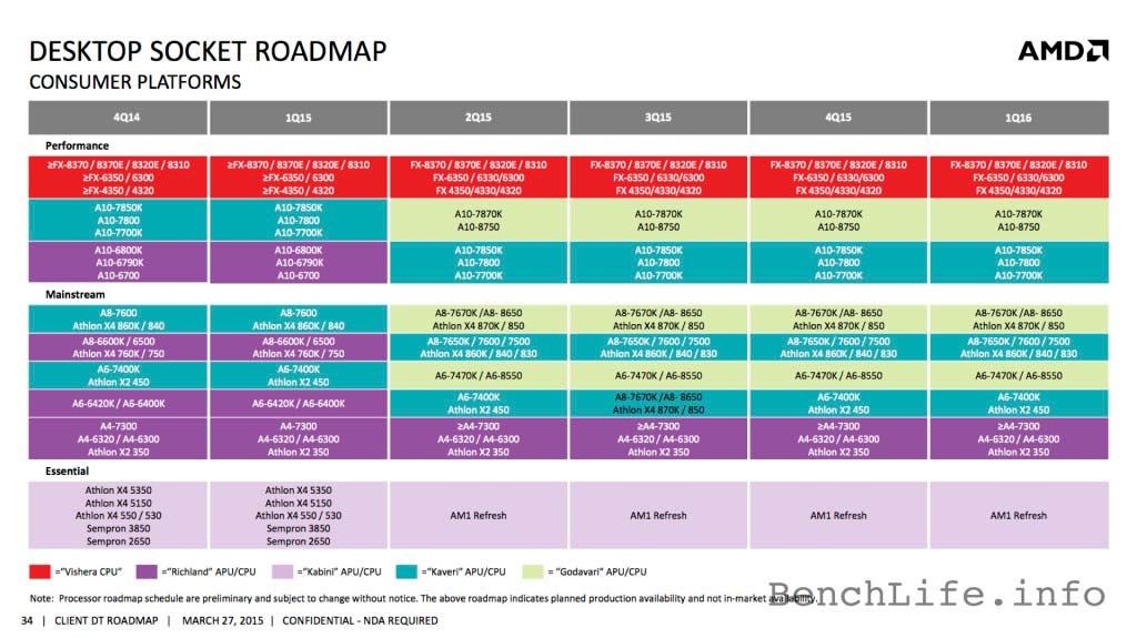 Junto a esto también podemos ver, como anticipamos, que los de rojo planean renovar su gama de procesadores y APUs para el socket AM1, una plataforma económica dirigida especialmente a equipos multimedia y de ofimática, ya que su rendimiento es bastante reducido.