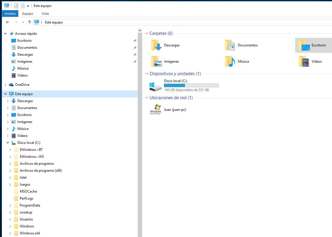 El explorador de archivos también se ha mejorado. Se eliminan las bibliotecas a cambio de una función de «acceso rápido». Los iconos son nuevos, más planos. La aplicación para almacenamiento en nube, OneDrive, tiene un lugar preferente comportándose como una unidad de disco. Mantiene la cinta Ribbon que no usaremos demasiado.
