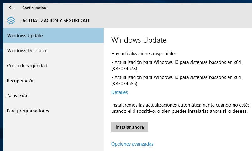 También novedosa la página de configuración que es donde se incluye Windows Update y que será una de las aplicaciones a utilizar desde el primer momento de la instalación para mantener actualizado el sistema, teniendo en cuenta el concepto de «Windows como servicio» de Windows 10, en permanente actualización. Incluye el mejorado antivirus Defender y las funciones de copia de seguridad y recuperación, que incluye la vuelta a un sistema anterior. Windows 10 crea una carpeta «Windows.old» para ello. Ocupa mucho espacio aunque lógicamente se puede eliminar perdiendo la opción de vuelta atrás.