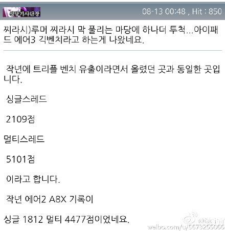 Por su parte el SoC A9X consigue unas puntuaciones de 2.109 y 5.101, lo que parece indicar que estamos ante un chip que mantiene el uso de un procesador de tres núcleos y que resulta algo más potente que el actual SoC A8X.