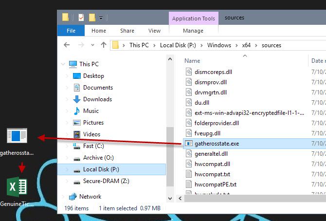 - Navegamos al directorio \Windows\x64\sources o \Windows\x32\sources, según la versión del sistema operativo que hayamos elegido, y sacamos al escritorio el archivo ejecutable gatherosstate.exe.