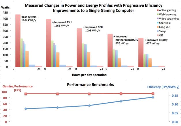 El estudio encontró que la sustitución de algunos componentes y la realización de ajustes en la configuración, los jugadores podrían reducir su consumo de energía hasta en un 75 por ciento, acumulando un ahorro potencial en gasto de energía de más de 18.000 millones de dólares para 2020, o lo suficiente para apagar 40 plantas de producción de energía de carbón de 500 megavatios.