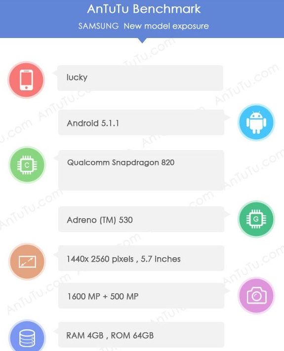 Como vemos en la imagen el Galaxy S7 volvería a utilizar un SoC de Qualcomm, concretamente un Snapdragon 820, y vendría acompañado de 4 GB de RAM, lo que garantizaría un rendimiento muy elevado y a prueba de futuro.