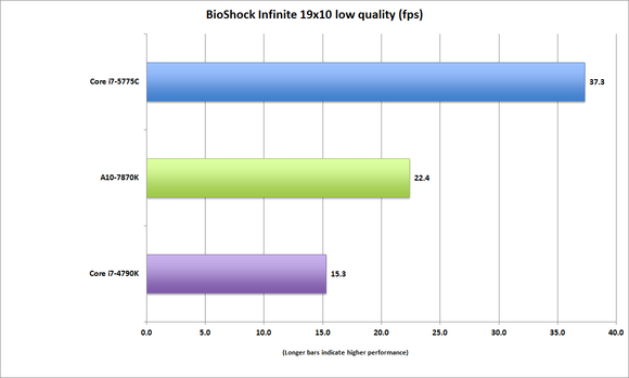 Lo dicho supone que el Core i7 5775C es capaz de doblar el rendimiento gráfico de otros chips de gama alta como el Core i7 4790K, un detalle que resulta más interesante de lo que pueda parecer a simple vista, ya que facilita una actualización por partes para aquellos que tengan presupuestos ajustados por busquen hacerse con un equipo de gama alta.