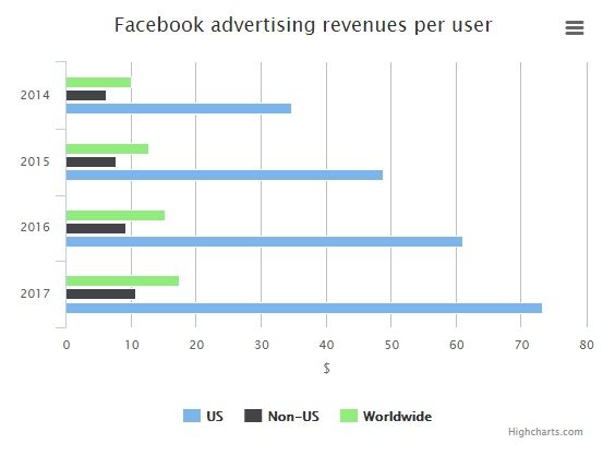 Por contra los usuarios que no son estadounidenses generan una media de 7,71 dólares en ingresos por publicidad al año, una cifra muy alejada que deja claro que las grandes compañías publicitarias valoran más ese tipo de nacionalidad.