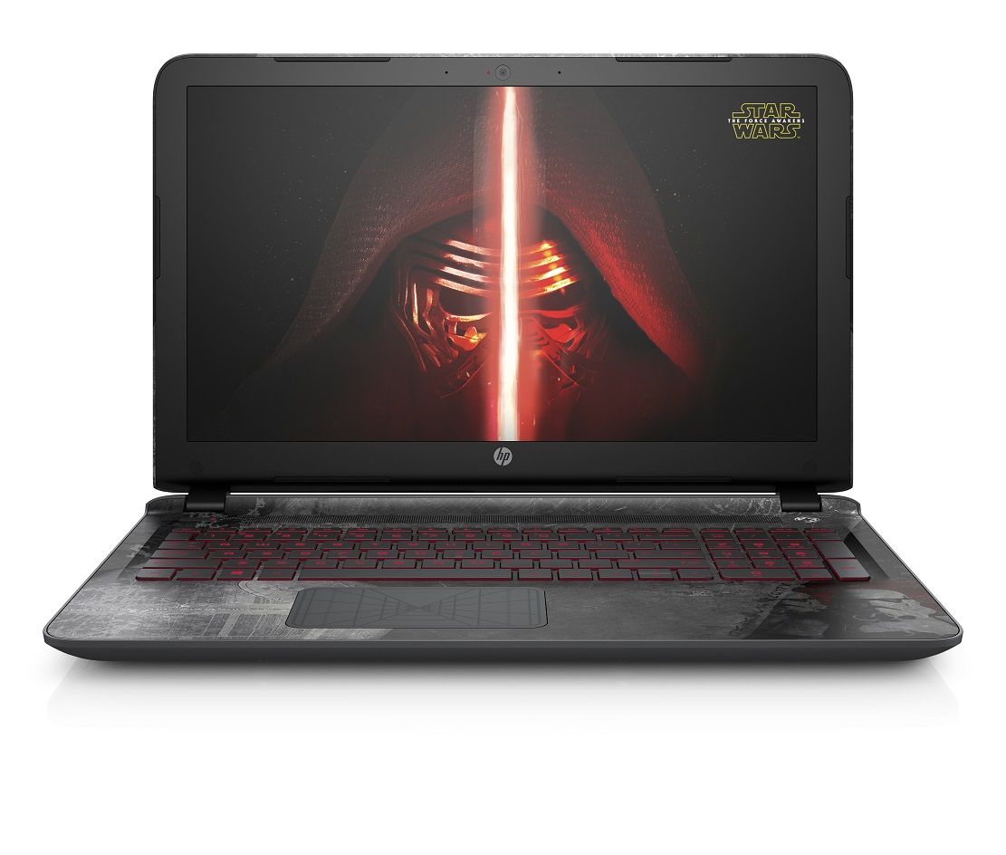 Para celebrar el anuncio de la película Star Wars: El Despertar de la Fuerza HP ha presentado un portátil de edición especial con un fantástico diseño inspirado en la conocida saga cinematográfica, en el que como vemos apuesta por una combinación de colores oscuros y retroiluminación roja en el teclado.