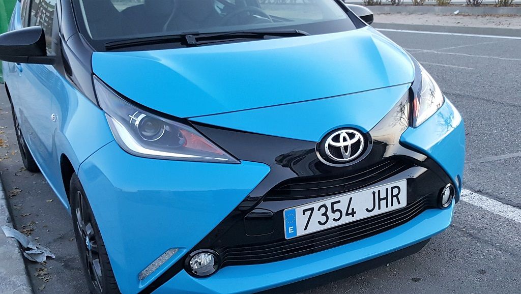 En nuestro caso Toyota España nos proporcionó para la prueba un deslumbrante x-cyan, un coche compacto y de aspecto divertido que enseguida da muestras de personalidad. Lo primero esa equis negra trazada en el frontal y los grupos ópticos afilados le distinguen de sus compañeros de chásis (el Citröen C1 y el Peugeot 108). Otros elementos como las agresivas llantas, grandes grupos ópticos traseros y carrocería en dos colores.