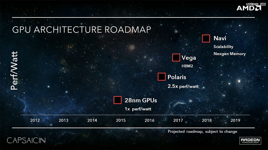 Decimos «iba» porque la hoja de ruta que ha revelado AMD nos deja con una gran incertidumbre, puesto que junto al nombre de cada generación gráfica indica una de las principales innovaciones que introducirá, y como vemos en Polaris no aparece dicho tipo de memoria.
