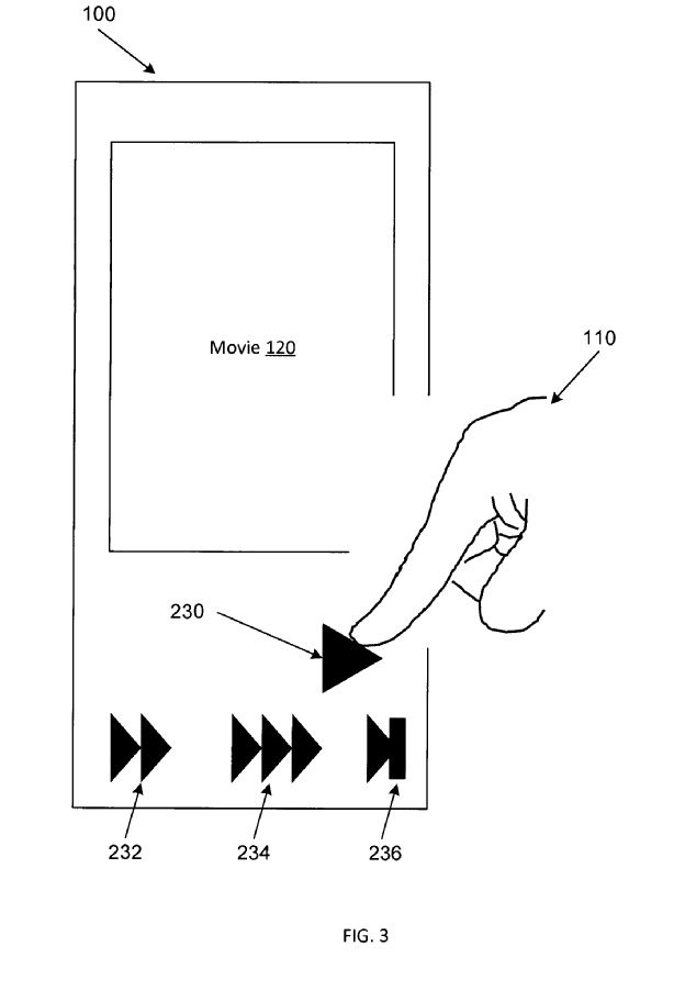 Podemos entenderlo mejor con un ejemplo; estamos viendo una película y queremos adelantar la reproducción utilizando la interfaz del reproductor. Con el sistema tradicional asoma toda la interfaz y se come buena parte de la pantalla, pero con la idea que plantea esta nueva patente sólo veríamos el botón exacto que vayamos a utilizar.