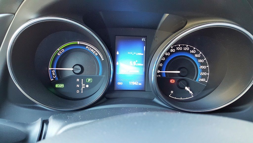 Al acceder al interior se puede comprobar que Toyota sigue en el camino de mejorar los acabados y materiales para competir en mejores condiciones con los rivales del segmento. Frente al conductor hay un nuevo cuadro de instrumentos cubierto con parasol que cuenta con dos relojes para indicar velocidad y el estado de carga o descarga de la batería.