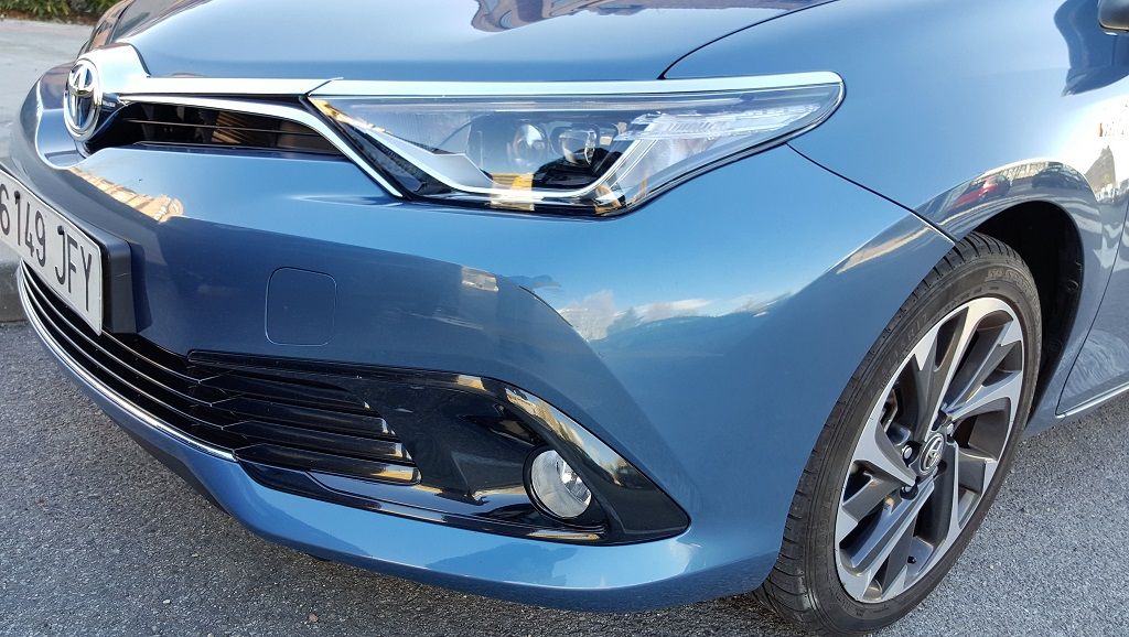 Uno de los trabajos más importantes realizados en la mesa de diseño del equipo de Toyota es sin duda la modernización de las líneas del Auris. En este nuevo modelo se ha evitado recurrir demasiado a las líneas redondeadas para dotar al coche de un perfil más afilado y agresivo que sintoniza muy bien con las nuevas tendencias en el mundo del motor para coches de su categoría. El frontal es más dinámico y e han estirado los faros (full led) para subrayar esas líneas más acentuadas.