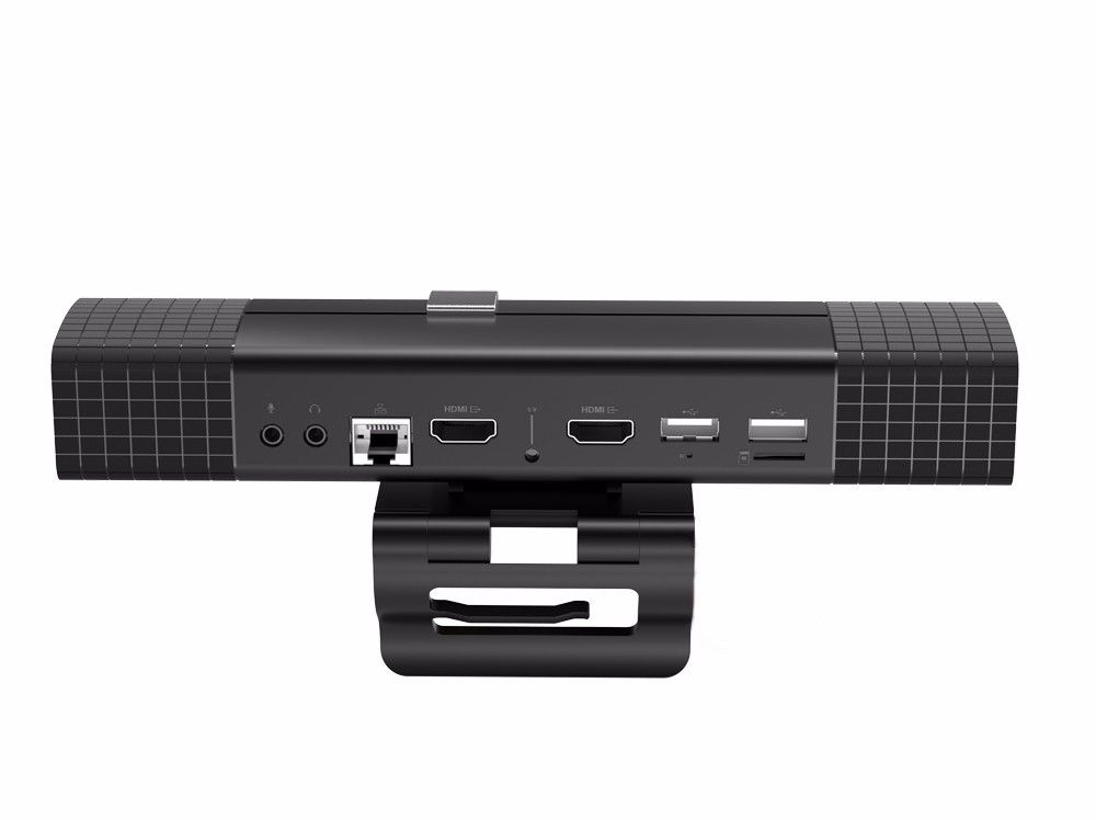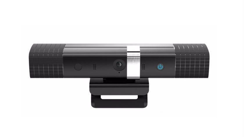 Su particular diseño deja ver que ha sido creado especialmente para anclarse a la parte superior de un monitor y actuar como equipo completo con soporte para videoconferencias, gracias a la cámara 1080p que tiene en posición central.