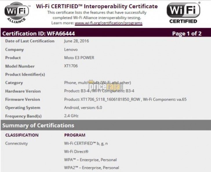 Hace cosa de un mes el Moto E3 recibió certificación Bluetooth y ahora ha conseguido el equivalente WiFi, un detalle que parece indicar que su lanzamiento podría estar realmente cerca.