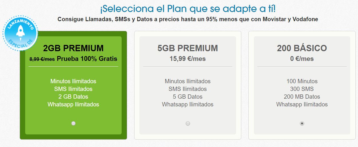 Los planes de pago que amplían las prestaciones del plan básico rebajan de un 20% a un 50% la media de tarifas del mercado. Concretamente, la compañía estadounidense ofrece 200 minutos de llamadas, 1 Gb de datos, 200 mensajes de texto y WhatsApp ilimitado por 4,99€. Y también propone otro plan con llamadas, mensajes y WhatsApp ilimitados y 2 GB de datos por 8,99€.